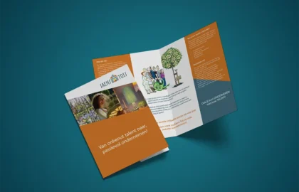 De flyer sluit volledig aan op de bestaande huisstijl en vormt zo een logisch verlengstuk van de website en andere communicatie-uitingen. Overzichtelijke stappen en consistente vormgeving zorgen ervoor dat de boodschap direct overkomt.